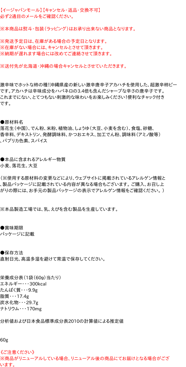 [関連キーワード:おつまみ 豆 お菓子 あて かきの種 激辛 沖縄 唐辛子 アカハチ 超激辛 刺激的]まとめ買いはコチラ(激安ケース) >>【イージャパンショッピングモール】内のみのお買い物は、送料一律でどれだけ買っても同梱する事が出来ます。